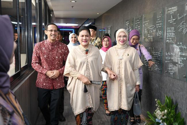 Iriana tampak mengangguk kepada Diah. Sebagai apresiasi, Ibu Negara itu memberikan hadiah.
