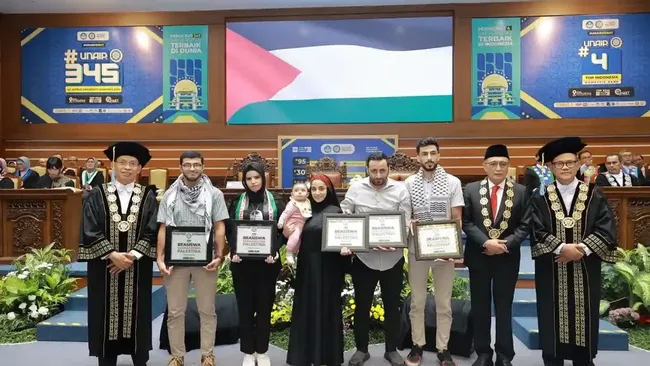 Universitas Airlangga (Unair) berikan beasiswa kepada lima mahasiswa yang berasal dari Palestina. Beasiswa yang diberikan berupa bantuan biaya hidup sebesar Rp 5 juta serta biaya kuliah sesuai dengan program studi masing-masing mahasiswa.