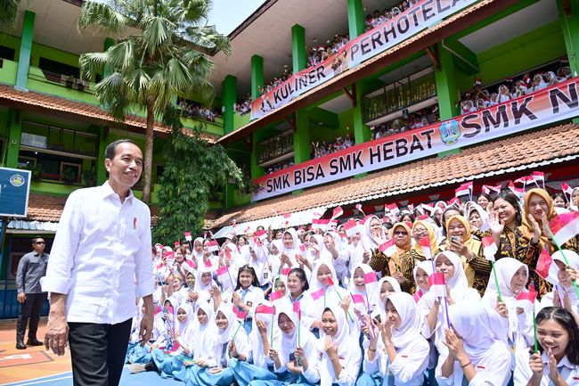 Presiden RI Joko Widodo (Jokowi) mengunjungi SMKN 3 Malang, Jawa Timur, pada Kamis (14/12/2023). Dalam kunjungan itu, Jokowi mengapresiasi sejumlah fasilitas pendukung pembelajaran.