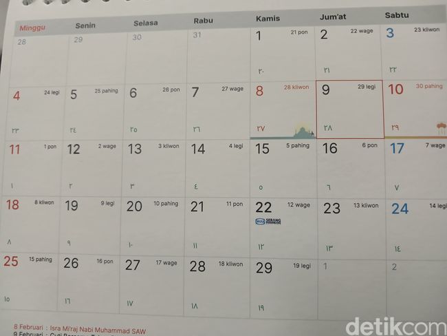 - 8 Februari (Kamis): Isra Mi'raj Nabi Muhammad SAW