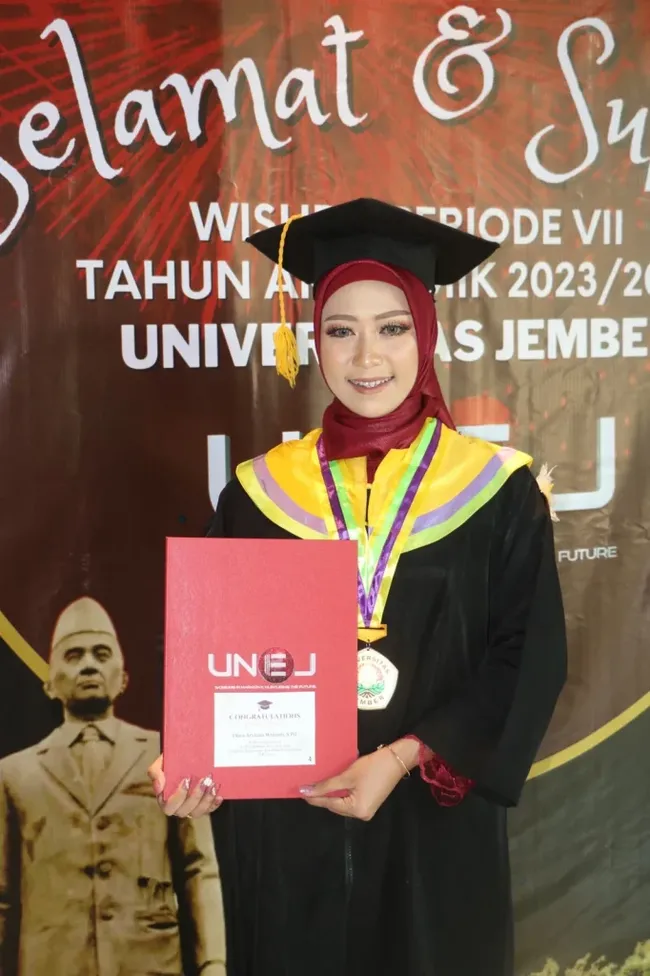 Universitas Jember (Unej) menggelar upacara wisuda periode VII tahun akademik 2023/2024 pada 6 Januari 2023 lalu. Dari sekian wisudawan, nama Dhea Arviana Wijianti dinobatkan sebagai peraih IPK tertinggi.