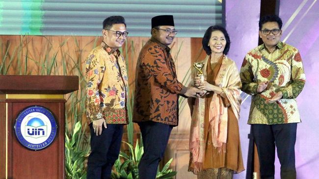 Dari sembilan kategori yang tersedia, penghargaan tertinggi yakni Lifetime Achievement diberikan kepada mendiang Prof Dr Nurcholish Madjid atau Cak Nur. Penghargaan ini diserahkan oleh Menag Yaqut kepada istri Cak Nur Ommy Komariah Madjid, di Auditorium Harun Nasution, Universitas Islam Negeri (UIN) Syarif Hidayatullah Jakarta, Minggu (26/5/2024).