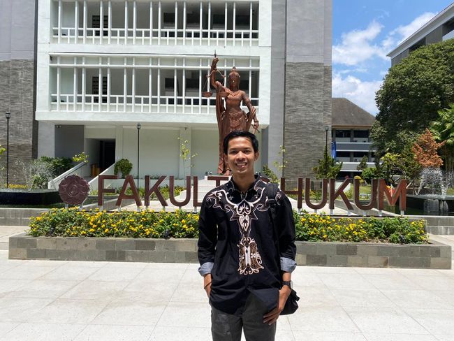 Di Fakultas Hukum Universitas Gadjah Mada (UGM), seorang laki-laki berbadan tinggi dan berpakaian batik hitam mendatangi detikEdu (6/9/2024). Sambil menyapa, sosok bernama Alfin Dwi Novemyanto itu menyalami awak media.