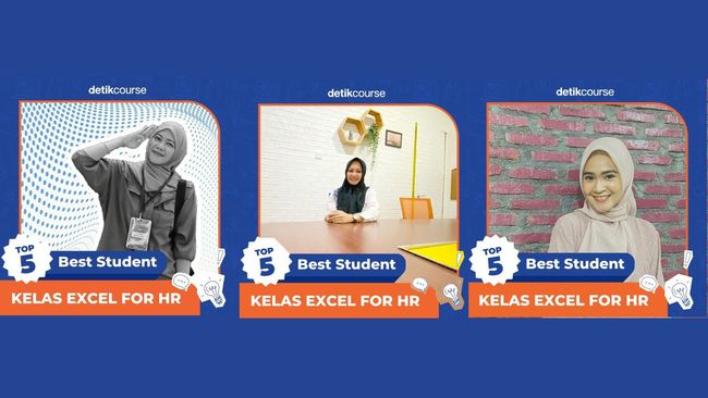 Selamat kepada para peserta terbaik Kelas Excel untuk HR detikCourse! Jika kamu ingin mengembangkan kemampuan Excel dan berkesempatan untuk tampil sebagai peserta terbaik seperti mereka, jangan lewatkan kelas-kelas berikutnya di detikCourse. Pantau terus detikEvent untuk informasi terbaru seputar kelas pengembangan skill yang bisa meningkatkan kariermu!