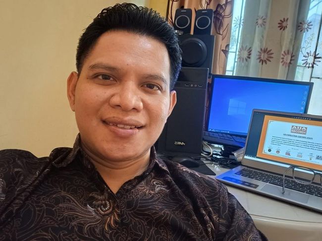 Harits bercerita pengalaman pertamanya saat menulis. Dahulu, laptop dan komputer jarang dimiliki siswa.
