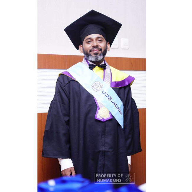 Wisudawan asal Bangladesh, Osman Masud raih cum laude jenjang magister dengan indeks prestasi kumulatif (IPK) 3,87 dan mendapatkan predikat cum laude.
