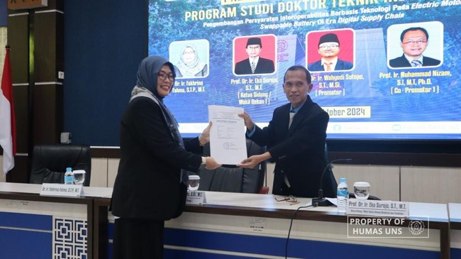 Kepala Prodi Doktor Teknik Industri, Prof Dr Ir Eko Pujiyanto mengatakan Dr Fakhrina merupakan lulusan ketiga prodi Doktor Teknik Industri UNS.