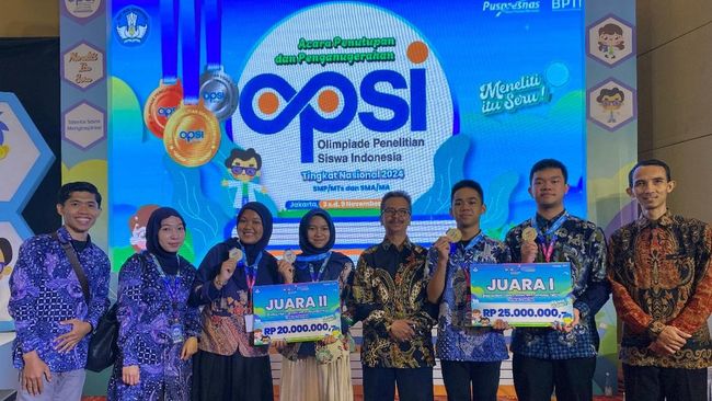 Siswa dari Madrasah Aliyah Negeri (MAN) 2 Kota Malang yang tergabung dalam tim riset berhasil memboyong dua medali di ajang Olimpiade Penelitian Siswa Indonesia (OPSI) 2024. Tim meraih satu medali emas dan satu medali perak.