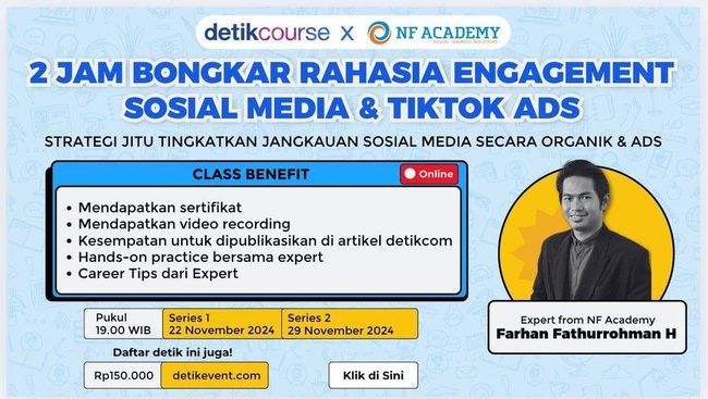 Jangan lewatkan kesempatan ini untuk meningkatkan strategi media sosial kamu. Yuk, daftar sekarang juga di detikevent!