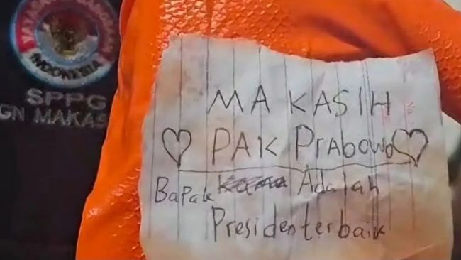 "Makasih Pak Prabowo. Bapak adalah presiden terbaik," demikian bunyi surat singkat tersebut, seperti disiarkan oleh Tim Media Presiden Prabowo di Jakarta (6/1/2025), dikutip dari Antara.