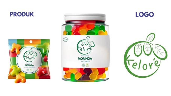Permen dari daun kelor ini berbentuk jeli warna-warni yang menarik perhatian. Nama permen jelinya adalah Kelore.
