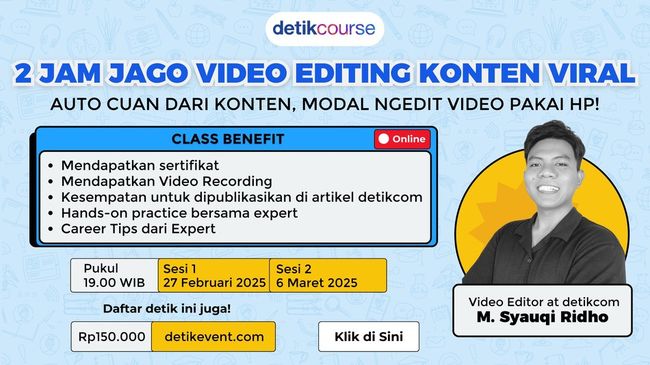 Bukan hanya itu, 5 peserta terbaik juga berkesempatan untuk dipublikasikan di artikel detikcom, yang bisa menjadi nilai tambah dalam portofolio kamu. Menguasai teknik editing video tidak hanya meningkatkan kualitas konten kamu, namun juga membuka peluang untuk monetisasi.