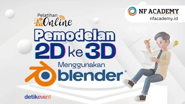 Salah satu cara paling efisien untuk memulai adalah dengan mengikuti Kelas Pemodelan 2D ke 3D Menggunakan Blender dari NF Academy. Kelas ini dirancang khusus untuk pemula dan fokus pada proses kreatif mengubah gambar 2D menjadi objek 3D siap pakai menggunakan Blender, software open-source yang banyak digunakan oleh praktisi profesional di dunia animasi, game, dan desain produk.