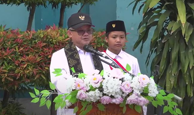 Hari pertama masuk sekolah pada Senin, 14 Juli 2025 di SD Negeri 16 Sumbawa berlangsung meriah. Bukan kepala sekolah, pembina upacara tahun ajaran baru 2025/2026 adalah Menteri Pendidikan Dasar dan Menengah, Abdul Mu'ti.