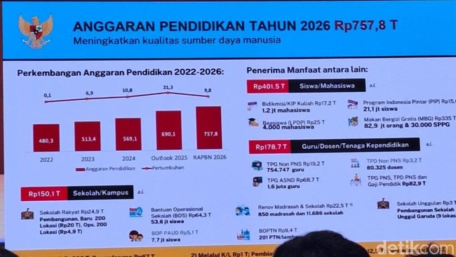 "Proporsi yang hampir setengah dari total anggaran pendidikan untuk satu program saja tentu akan menimbulkan pertanyaan tentang keseimbangan dengan kebutuhan mendesak lainnya di sektor pendidikan," ucap Lalu kepada detikEdu dalam keterangan tertulis Sabtu (16/8/2025).