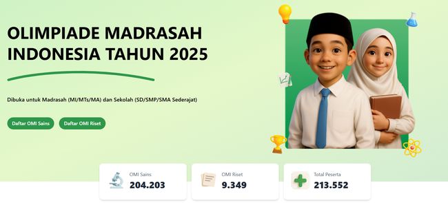 Sebagai informasi, Olimpiade Madrasah Indonesia (OMI) adalah perlombaan yang diselenggarakan oleh Kementerian Agama (Kemenag). Perlombaan ini bertujuan untuk mengembangkan potensi, bakat, minat, serta daya saing murid madrasah dan sekolah sederajat di bidang sains dan riset.