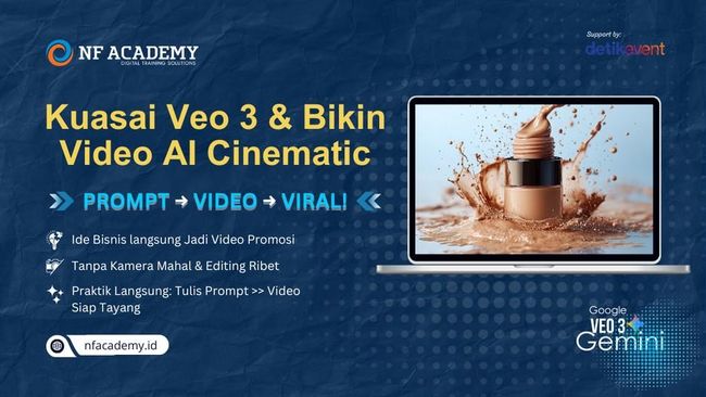 Buat kamu pelaku UMKM, content creator, atau digital marketer, kemampuan bikin video promosi secara instan dan menarik adalah skill penting yang bisa bantu meningkatkan visibilitas dan engagement produkmu. Kabar baiknya, semua itu bisa kamu pelajari langsung lewat kelas "Bikin Video Promosi Profesional Pakai AI Veo 3".