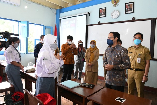 7 Foto Kompak Nadiem-Gibran Angkat Meja saat Tinjau PTM di Solo