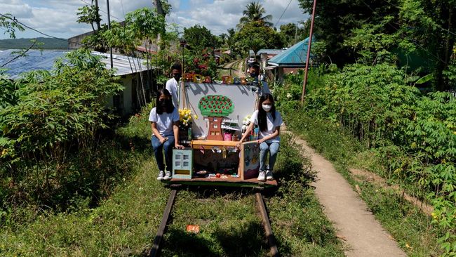 Filipina - Sebuah kereta lori kayu dimodifikasi menjadi sarana edukasi bagi anak-anak miskin di Filipina. Empat guru muda berkeliling desa untuk memberi pendidikan.