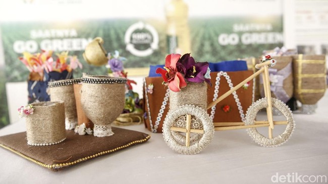 Bekasi - Sekolah Alam Tunas Mulia memamerkan hasil kerajinan siswanya yang dibuat dari sampah. Hasil kerajinan itu dibuat anak-anak sekolah alam dalam waktu 5 hari saja.