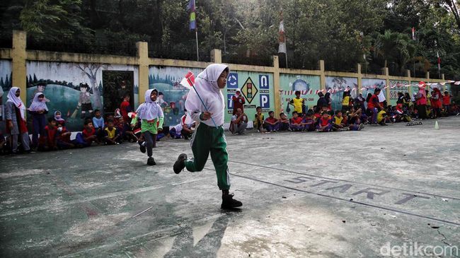 Jakarta - Lomba HUT RI tidak hanya digelar di permukiman warga. Lomba juga dilakukan di sejumlah sekolah, seperti di SDN Semper Barat 13/14, Cilincing, Jakarta Utara.
