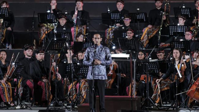 Magelang - Sajian seni budaya presidensi G20 bidang Kebudayaan Kemendikbudristek menampilkan gelaran musik Orkestra G20 yang menampilkan harmonisasi budaya. Ini potretnya.