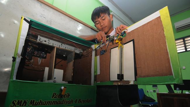 Boyolali - Siswa SMK di Boyolali membuat mesin robotik untuk memilah sampah. Inovasi alat pemilah sampah ini mengadopsi cara kerja mesin ATM. Nih lihat.