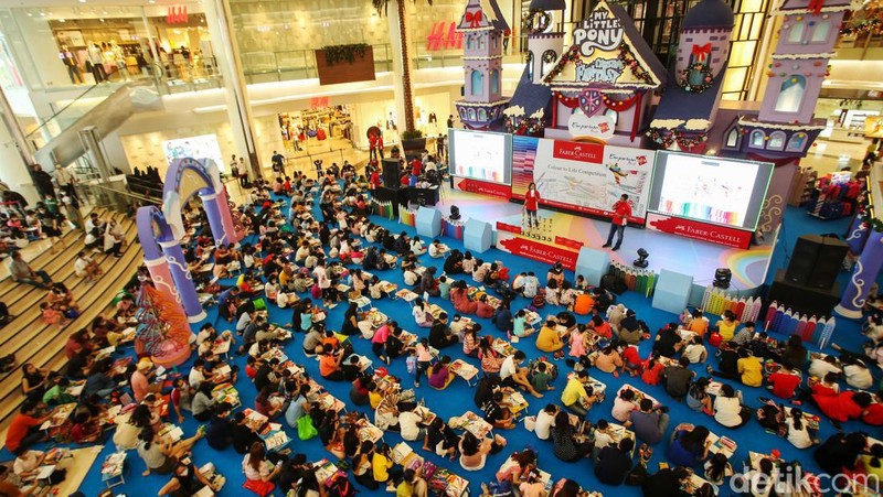 Anak-anak mengikuti lomba mewarnai di Emporium Pluit Mall, Jakarta.