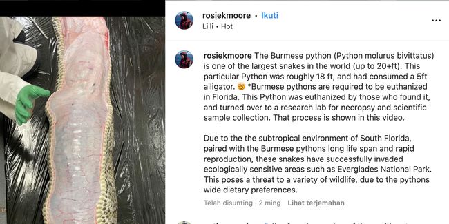 Jakarta - Sekelompok ilmuwan di Florida, AS membedah bangkai ular piton Burma yang menelan bulat-bulat aligator. Ini potret aligator-buaya ditelan bulat-bulat ular piton.
