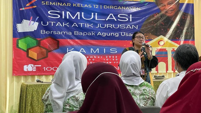 Siswa-siswi kelas XII SMA 77 DKI Jakarta menyimak materi yang dipaparkan oleh Agung Usadi. (Foto: Dokumentasi Komite SMA 77 Jakarta)
