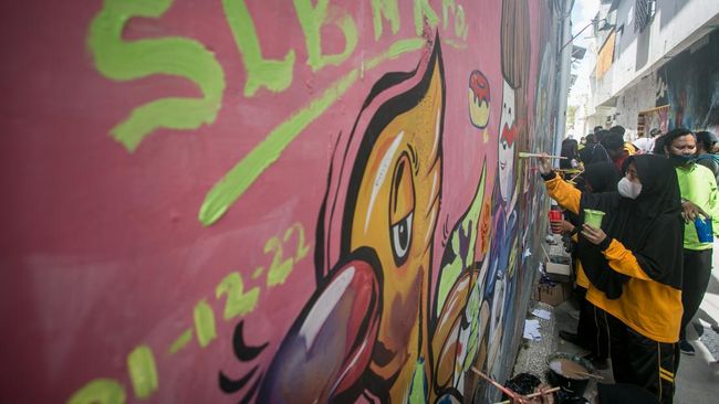 Solo - Puluhan pelajar Sekolah Luar Biasa (SLB) Karanganyar belajar mengenal mural. Kegiatan tersebut dilakukan untuk menyambut Hari Disabilitas Internasional.