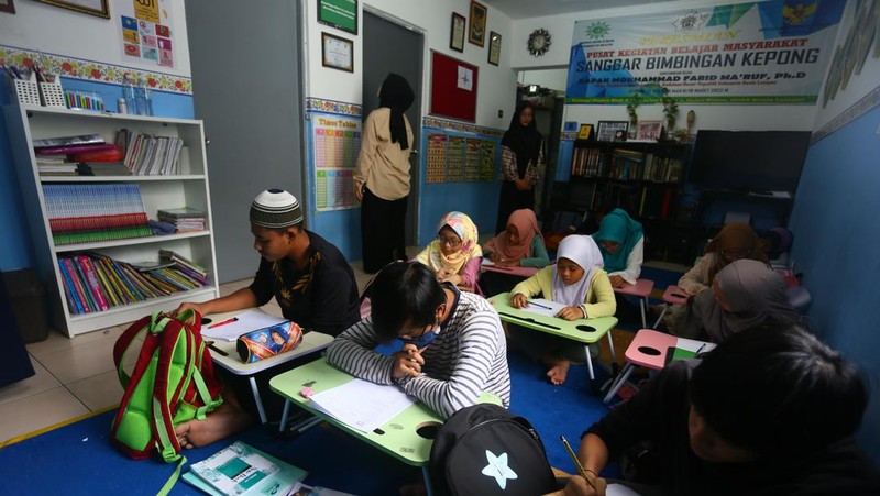 Murid-murid mengerjakan soal Pendidikan Pancasila dan Kewarganegaraan di Sanggar Bimbingan Kepong, Kuala Lumpur, Malaysia, Rabu (14/12/2022).