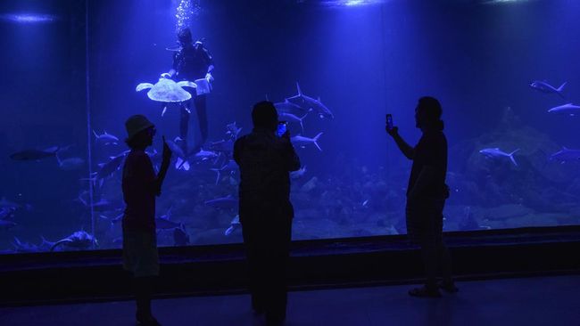 Pangandaran - Akuarium raksasa jadi pilihan destinasi wisata baru di Pangandaran, Jawa Barat. Wahana ini menjadi wisata edukasi tentang biota laut.