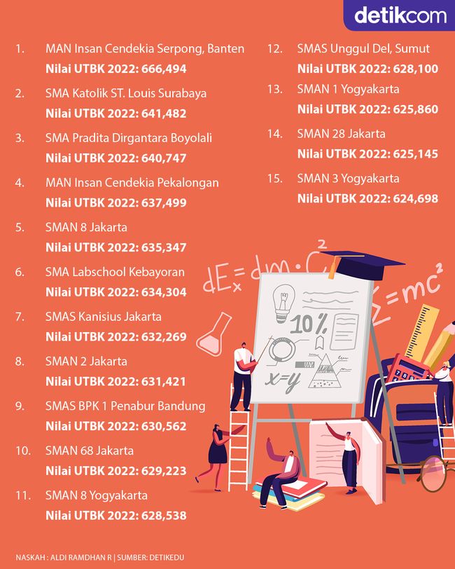 Jakarta - Lembaga Tes Masuk Perguruan Tinggi (LTMPT) merilis daftar 1000 sekolah terbaik di Indonesia pada tahun 2022 lalu. Ini 25 besar di antaranya. Sekolahmu masuk?