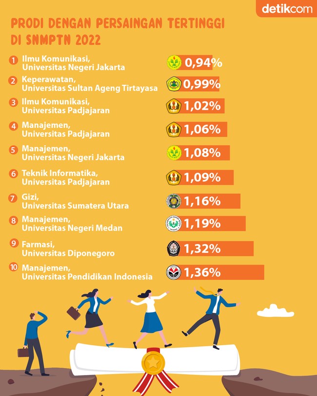 Jakarta - Sudahkan memilih jurusan kuliahmu untuk Seleksi Nasional Berbasis Prestasi (SNBP) 2023? Prodi dengan persaingan tertinggi SNMPTN 2022 ini bisa jadi referensi.
