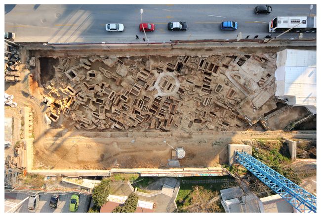 Peradaban terkubur ini ditemukan pada saat pembangunan metro di kota terbesar kedua di Yunani, Thessaloniki sedang berlangsung. Proyek kereta metro ini mulai ground breaking tahun 2006 dan lama kelarnya karena berbagai penemuan arkeologi bawah tanah di titik-titik stasiun yang direncanakan. (Foto: Operator kereta metro Thessaloniki: Attiko Metro SA)