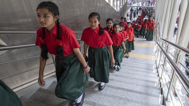 Bangladesh - 700 anak di Bangladesh mendapatkan tumpangan gratis di kereta metro untuk pertama kalinya. Anak-anak itu antusias saat naik kereta metro dengan teman-temannya.