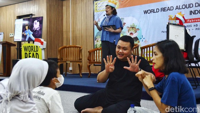 Jakarta - Peringatan Hari Membaca Nyaring Sedunia atau World Read Aloud Day digelar di TIM, Jakarta, Rabu (1/2/2023). Puluhan anak ikut memeriahkan peringatan tersebut.