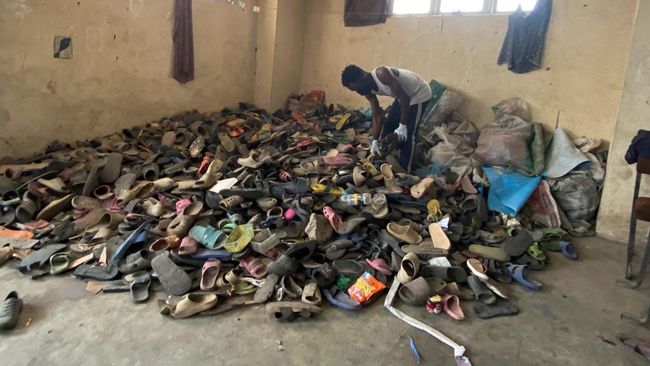Nigeria - Seorang seniman Nigeria bernama Eugene Komboye menciptakan karya seni menggunakan sandal jepit bekas. Yuk kita lihat prosesnya.