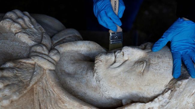 Roma - Patung marmer Hercules "seukuran manusia" ditemukan di Jalan Appian, Roma, saat perbaikan saluran pembuangan. Begini bentuknya.