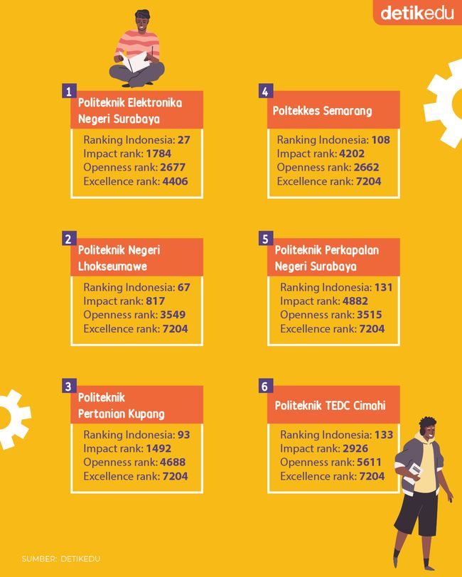 Jakarta - detikers berencana melanjutkan ke pendidikan tinggi vokasional? Ada baiknya mengetahui politeknik apa saja yang masuk ke dalam 10 besar edisi Webometrics 2023!