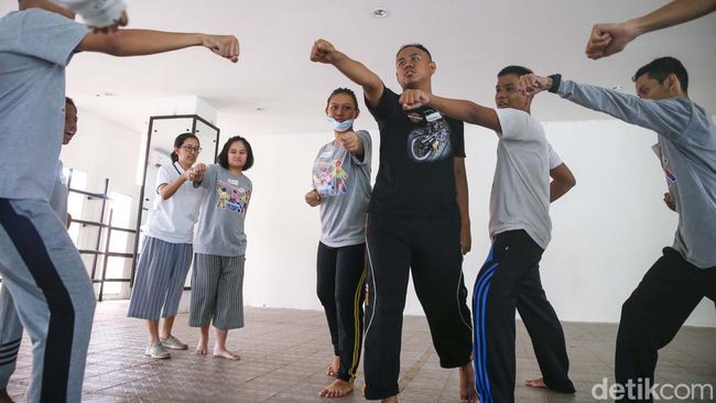 Tangerang Selatan - Demi melatih motorik dan juga bela diri, sejumlah anak-anak berkebutuhan khusus mengikuti pelatihan taekwondo di Pasar Gintung, Tangerang Selatan.