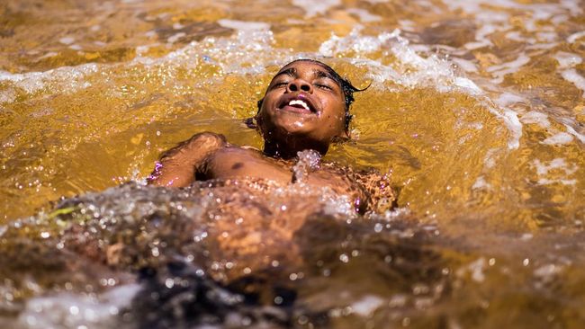 Riangnya Anak-anak Pribumi Pertama Kali Main di Pantai