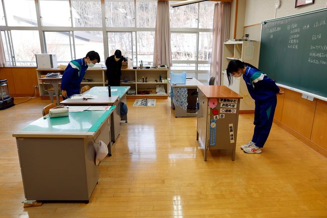 Kanazawa, sang guru, Eita dan Aoi menghadiri kelas sebelum upacara kelulusan dan upacara penutupan sekolah pada 9 Maret 2023 lalu. Foto: REUTERS/ISSEI KATO