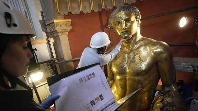 Vatikan - Patung Hercules raksasa bersepuh emas ditemukan di Museum Vatikan. Patung setinggi empat meter itu kini tengah direstorasi.