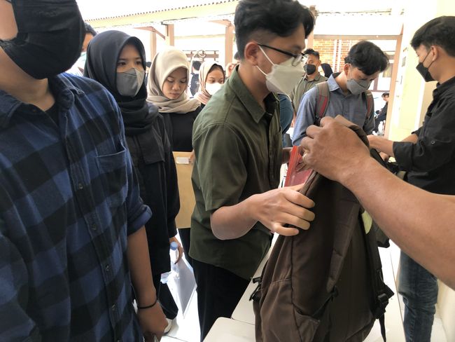 Tas milik peserta akan dititipkan di ruang transit dan peserta hanya diizinkan untuk membawa dokumen yang diperlukan. Foto: Zefanya/detikEdu
