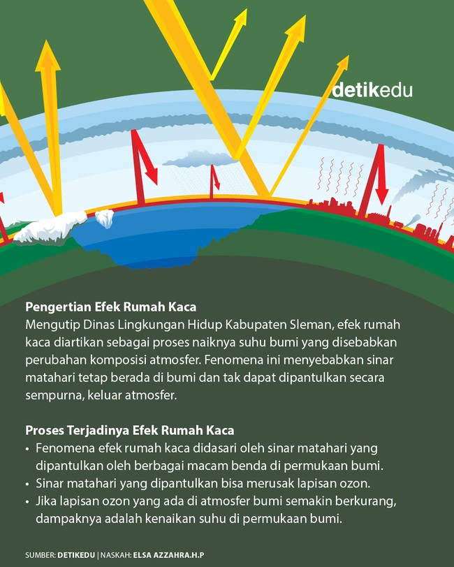 Jakarta - detikers sering mendengar istilah efek rumah kaca? Bagaimana sebenarnya proses terjadinya? Yuk lihat infografis berikut ini biar semakin mengerti...