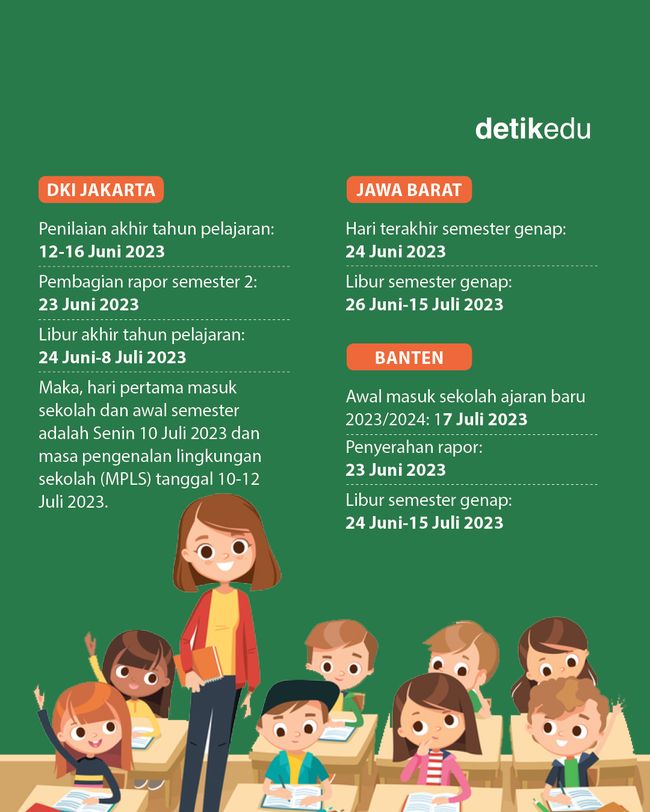 Jakarta - Tahun ajaran baru 2023/2024 akan segera dimulai. Di tempatmu tahun ajaran baru dimulai kapan? Cek di infografis di bawah ini yuk!
