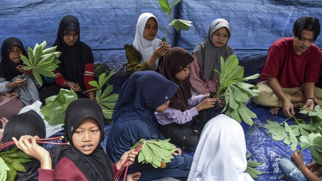 Ciamis - Demi mengurangi penggunaan gawai pada anak, Sekola Moteker di Ciamis, Jawa Barat, menggelar kreasi tradisional berupa kalung dan gelang dari daun singkong.