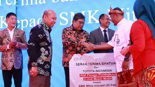 Pati - SMK Mitra Mandiri 02 Pati, Jawa Tengah, menerima bantuan mesin mobil dari Toyota. Bantuan mesin akan digunakan sebagai alat peraga pendidikan.